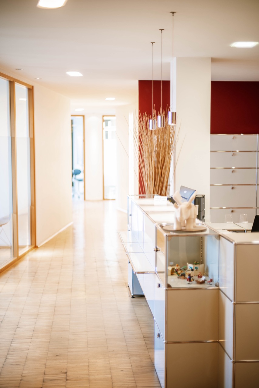 Unsere Behandlungsräume sind hell, freundlich und modern eingerichtet. Große Fensterfronten ermöglichen einen Rund-um-Blick über Dortmund, da die Praxis sich im sogenannten Wolkenbügel in der 5. Etage befindet.